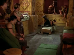- In the middle of 1.02 - Between Friends when Strife is eavesdropping, Jason sleeps on the bottom bunk, with Hercules in the top bunk above him. Nysus Gaius sleeps on the top bunk on the opposite side of the hallway.