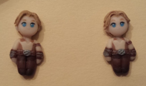 These earrings were commissioned by Bryn from the Etsy shop LittleBreezesCrafts. They are tiny figures of Hercules and Ares made out of polymer clay and fashioned into post stud earrings. Each earring is about 2 cm tall.