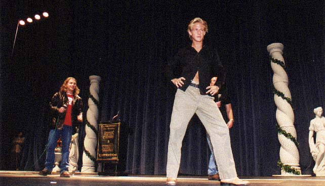 Convention picture of Dean O'Gorman, Ryan Gosling, and Chris Conrad at 1999, January 23-24 - Creation Con - Santa Monica, CA, USA. Image from 1999 Annual Hercules/Xena Convention Report.